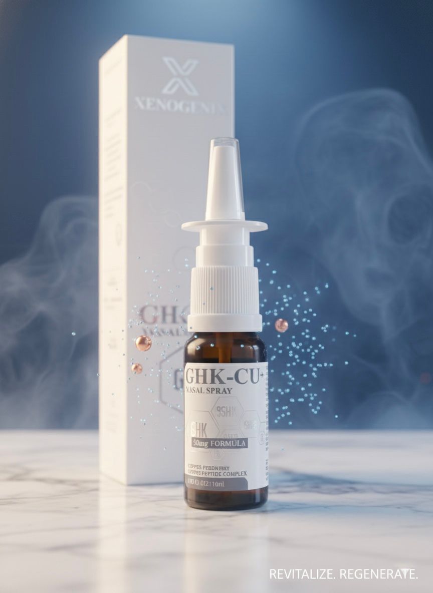 This Compounded GHK-Cu Nasal Spray is designed to support cellular regeneration and overall wellness. This nasal spray delivers GHK-Cu (glycyl-l-histidyl-l-lysine copper peptide) directly into the bloodstream through the nasal mucosa for rapid absorption. GHK-Cu is often prescribed for its potential benefits in promoting tissue repair, reducing inflammation, and supporting neuroregeneration. This unique formulation offers a non-invasive and convenient alternative for patients seeking targeted peptide therapy.